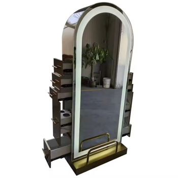 Özelleştirilebilir boyutu altın rengi kuaför depolama dolabı ticari mobilya Salon istasyonları ekipmanları el lavabo ekran standı